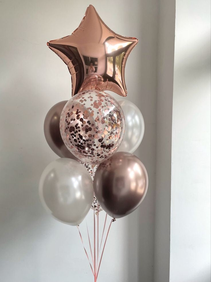 Experimente la diversión y emoción con nuestro Bouquet de Globos con helio, que incluye 5 globos de látex y una estrella o corazón metálico. Con Helio, los globos flotarán en el aire para agregar un toque mágico a cualquier celebración. ¡Elige entre una variedad de colores para personalizar tu Bouquet y hacerlo único!