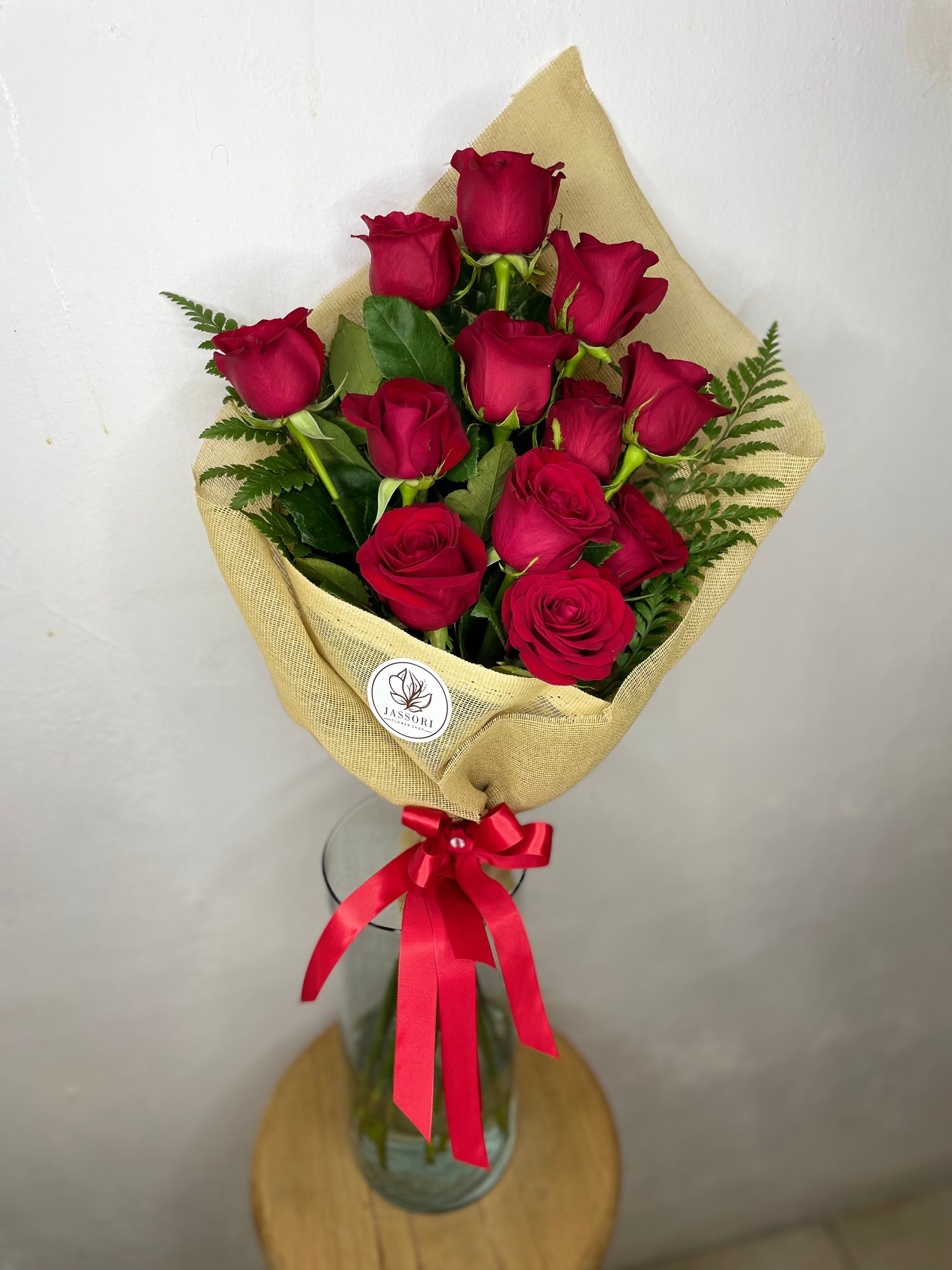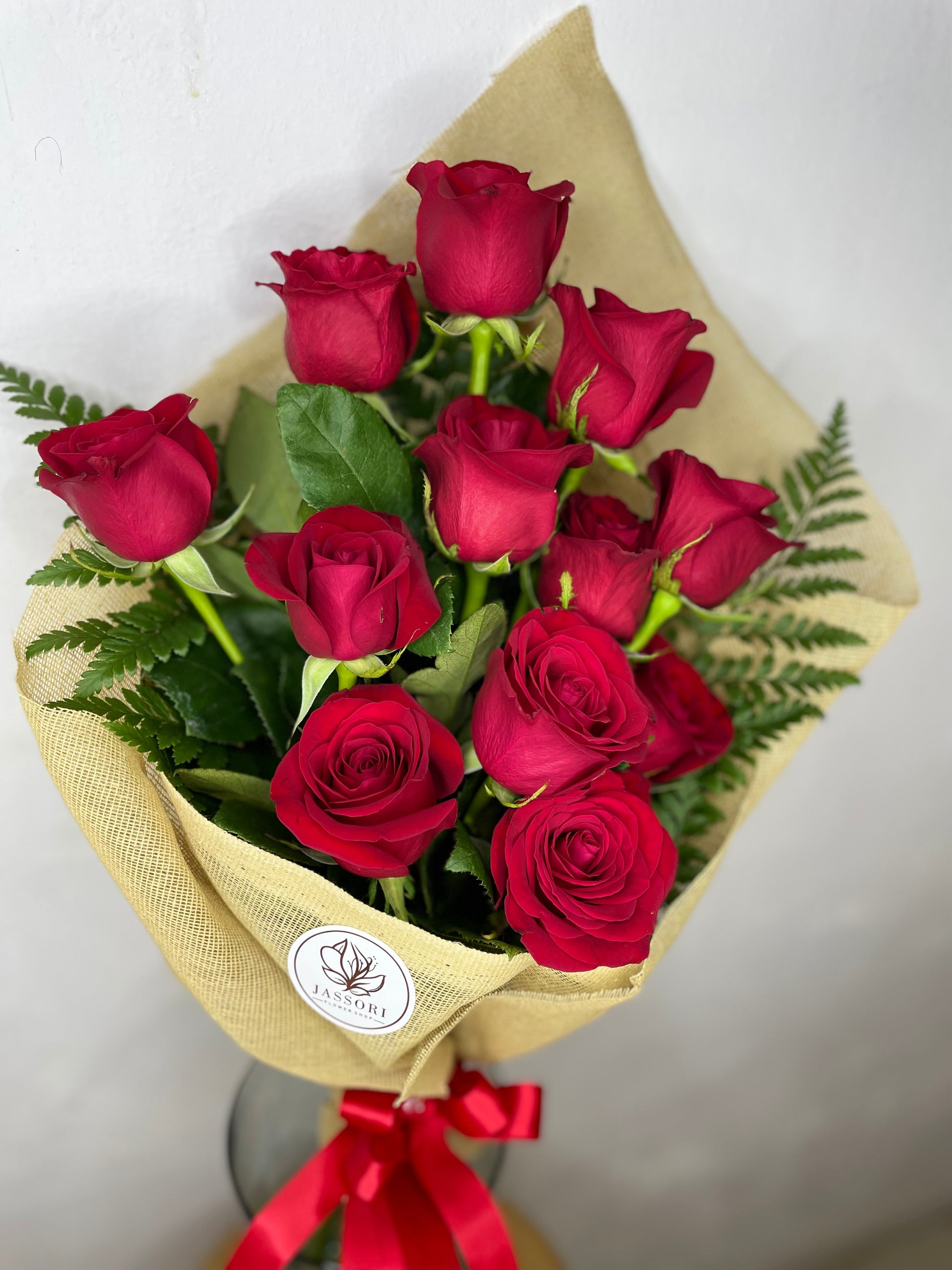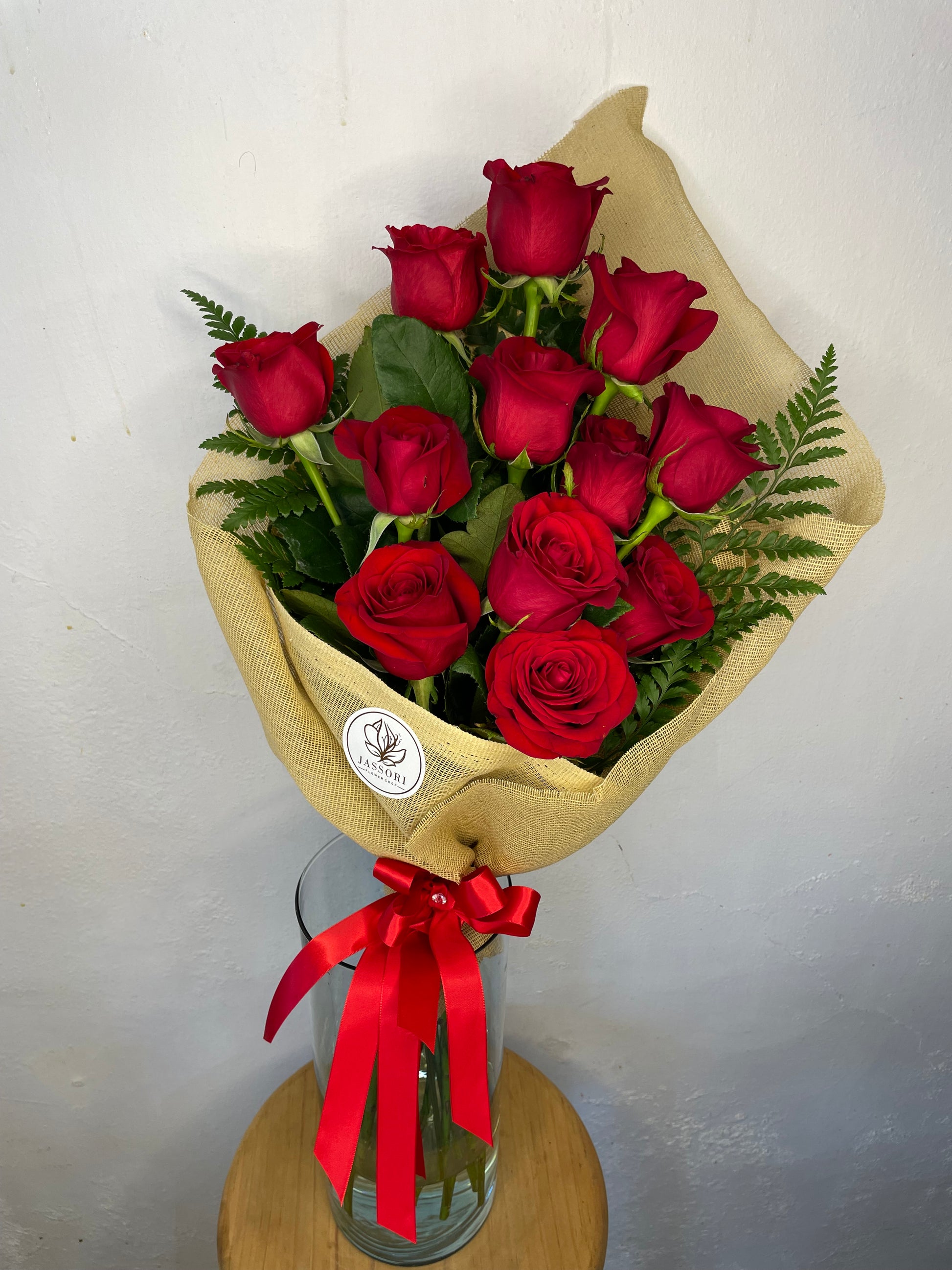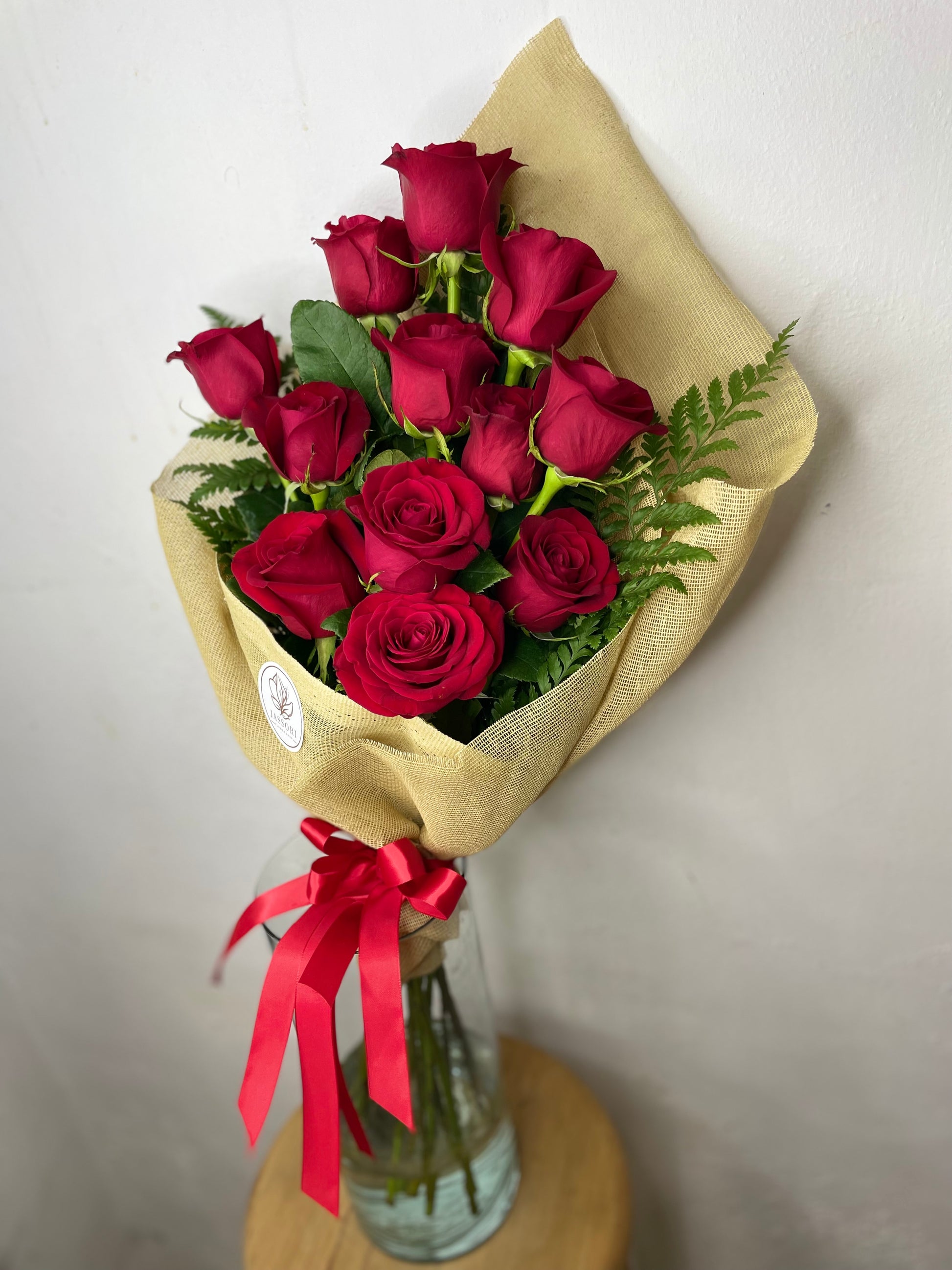 ¡Con Doce Razones, el amor nunca se acaba! 12 Rosas rojas envueltas en tela yute y atadas con un listón rojo, para expresar amor y pasión a tu ser querido. ¡Haz que cada día sea San Valentín (o cualquier día) con Doce Razones!