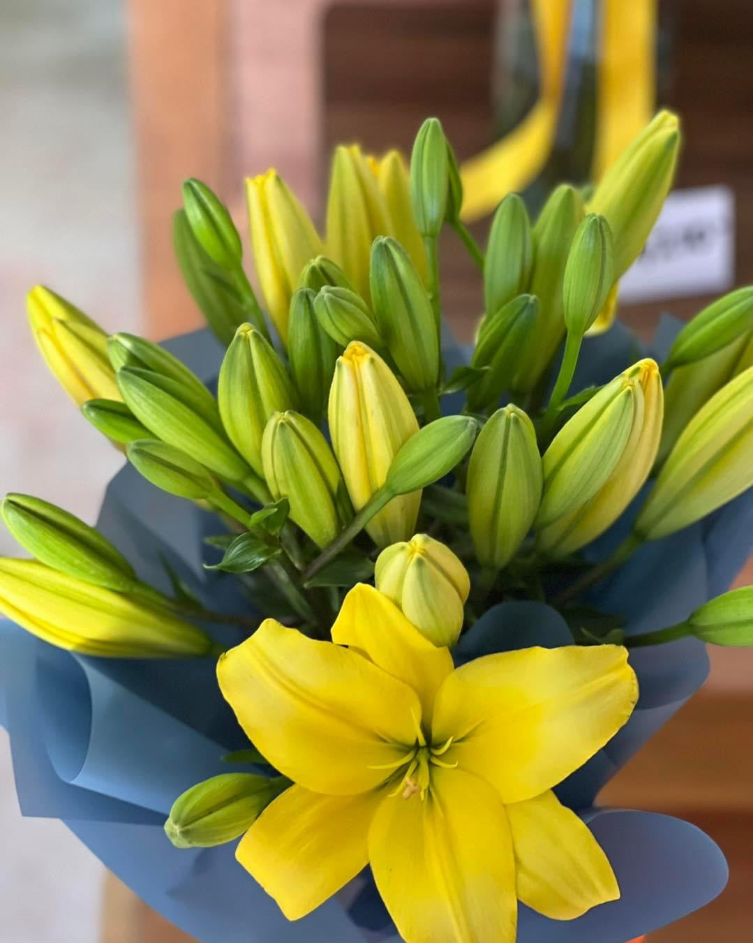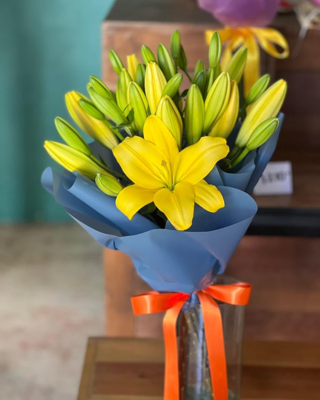 Descubre la audacia de la elegancia con este ramo de lirios amarillos, una combinación perfecta de sutileza y fuerza. Su vibrante color amarillo ilumina cualquier espacio, mientras su diseño delicado y sofisticado expresa una personalidad atrevida y única. Ideal para quienes buscan destacar con estilo y confianza.