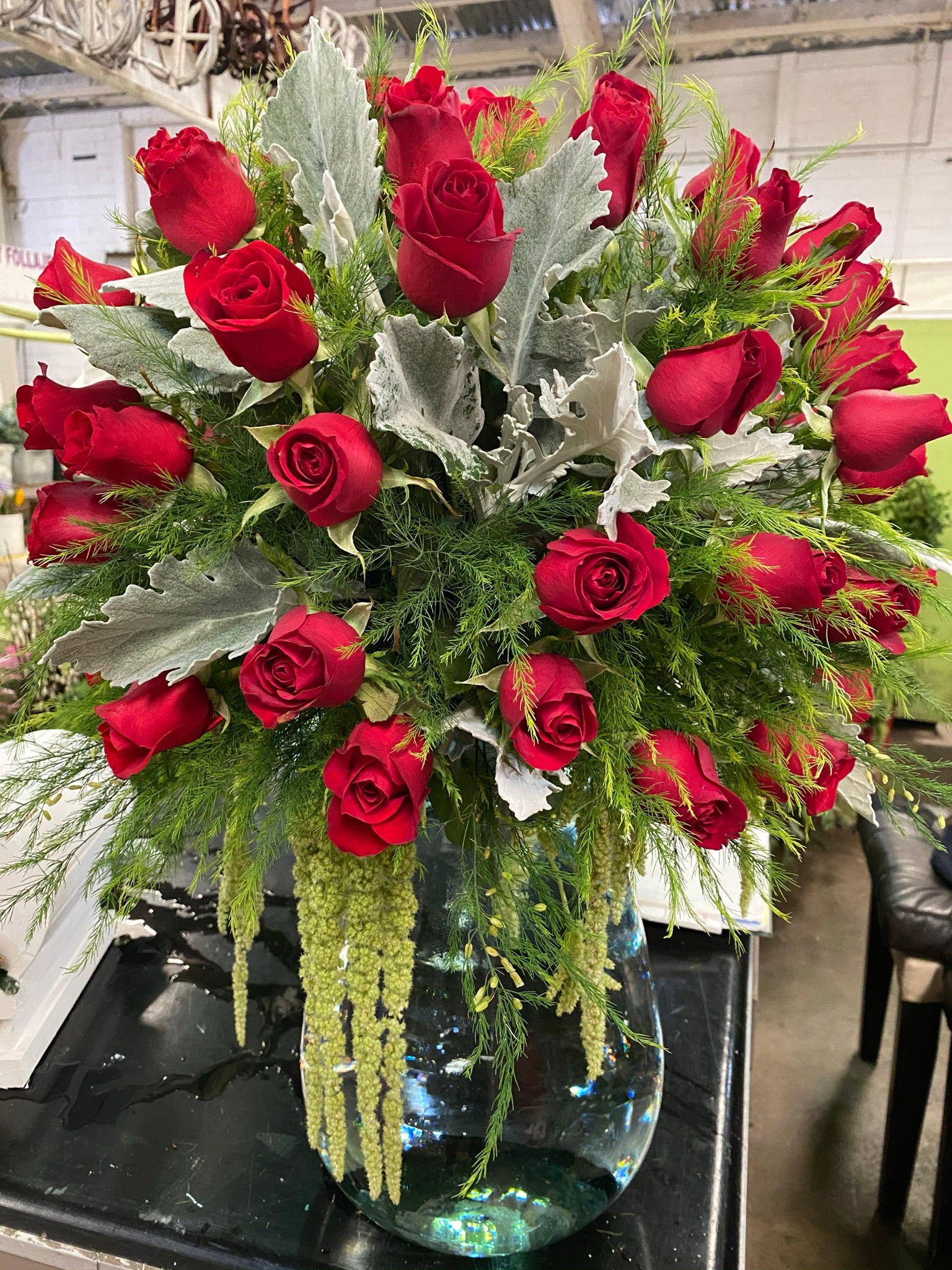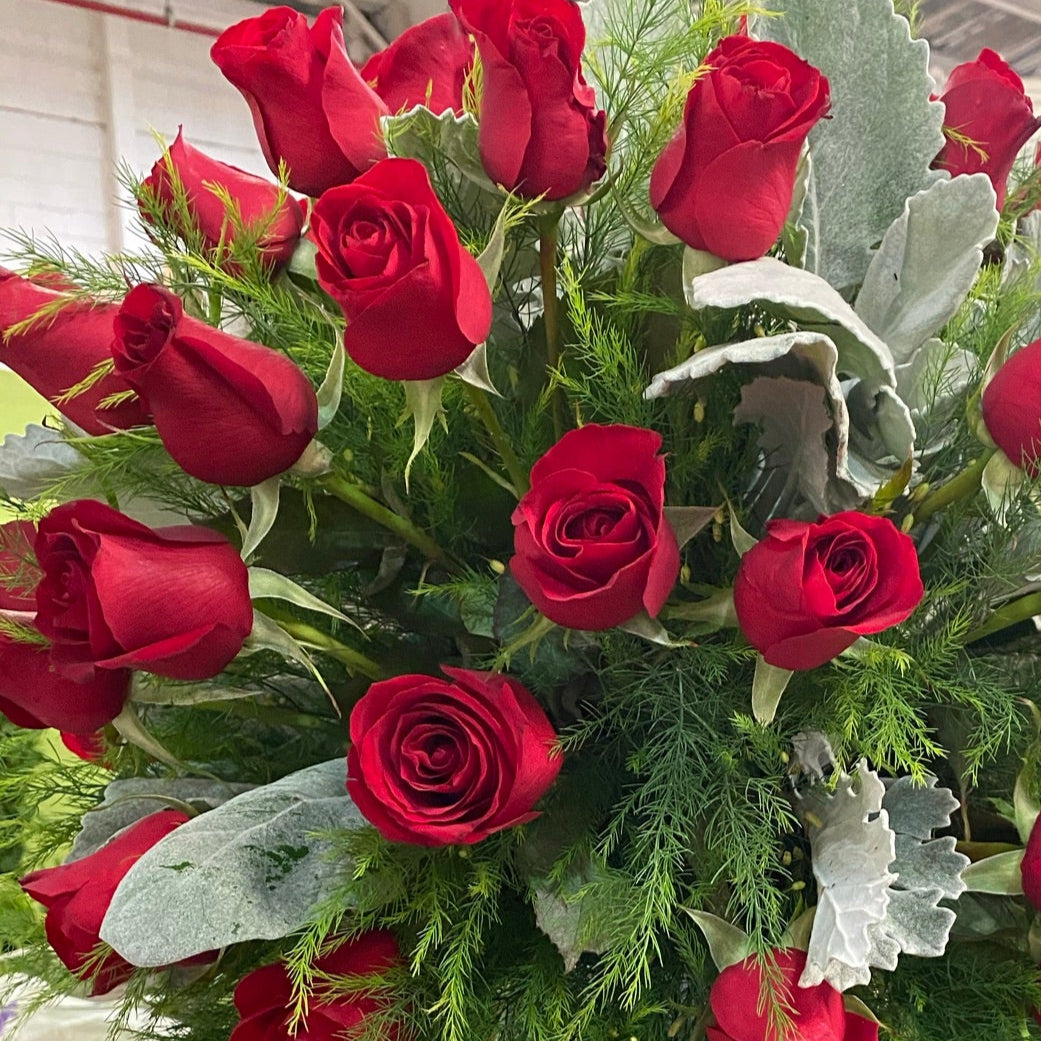 Descubre "Sofia", una impactante creación con 36 rosas rojas intensas que irradian pasión y fuerza. Cada flor está cuidadosamente dispuesta en un floreo de vidrio que realza su belleza vibrante, acompañado de un follaje fino que aporta elegancia y contraste. Perfecta para quienes buscan expresar sentimientos profundos con un toque audaz y sofisticado.