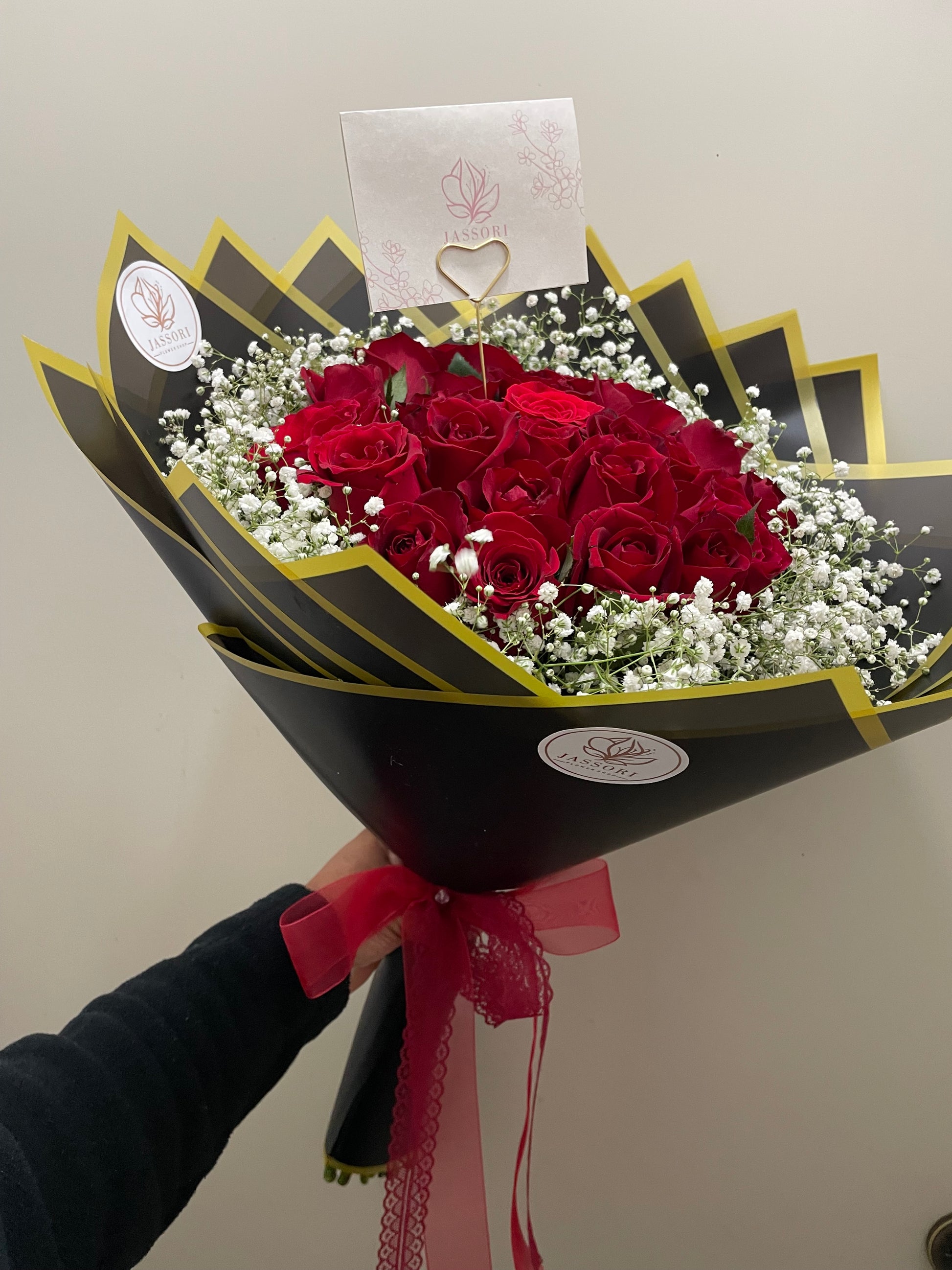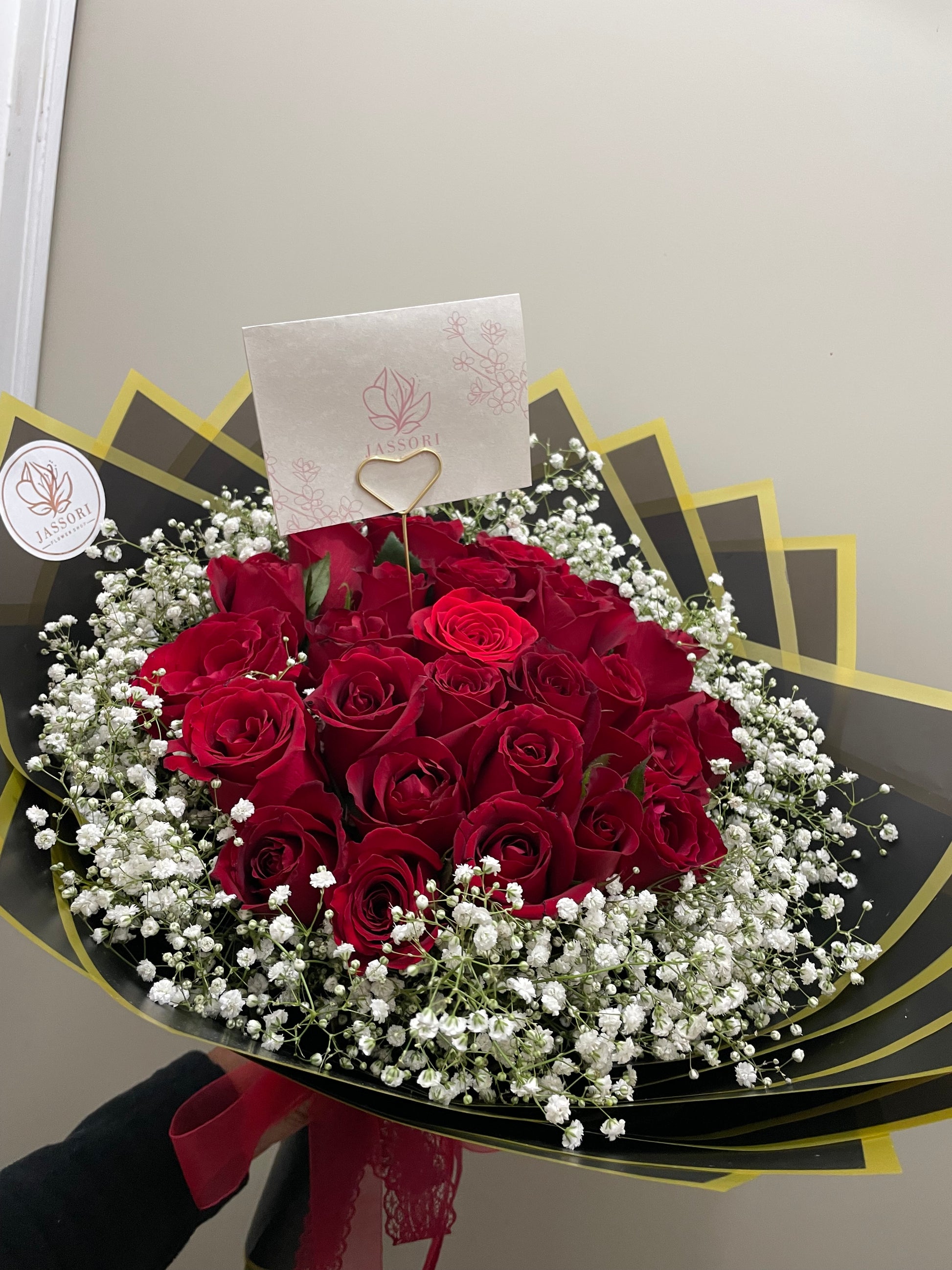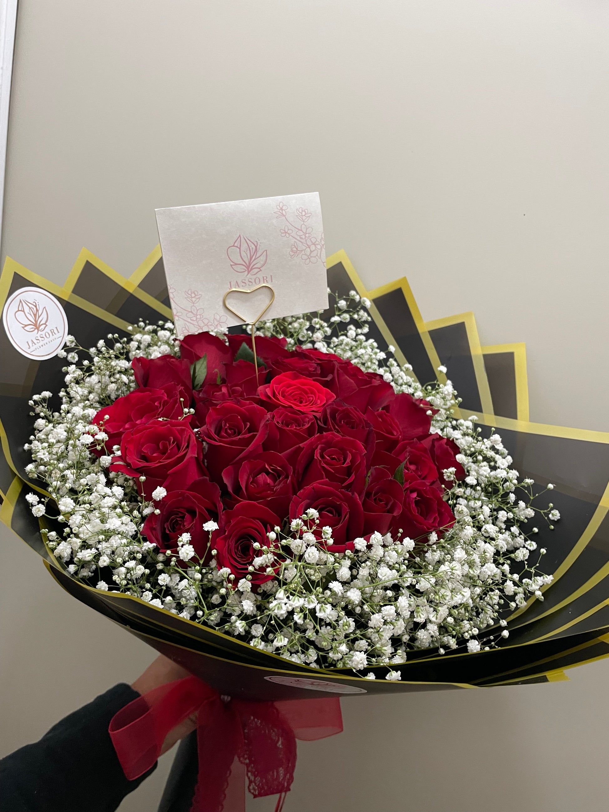 ¡Sorprende a tu ser querido con nuestro ramo Romántico de 25 rosas rojas! Las rosas rojas simbolizan el amor y el ramo contiene 25, ¡lo que significa que hay mucho amor para dar! Perfecto para expresar tus sentimientos de manera romántica y sincera.