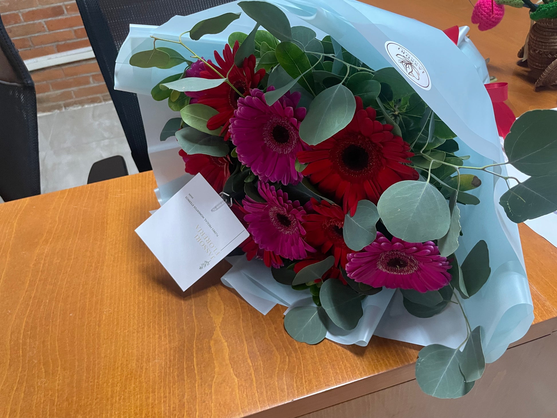 Experimenta la belleza de la naturaleza con nuestro ramo de flores "Tentación". Contiene 12 Gerberas en tonos rojo y fiucsa, junto con un elegante follaje y papel coreano premium. Disfruta de su frescura y elegancia en cualquier ocasión especial.